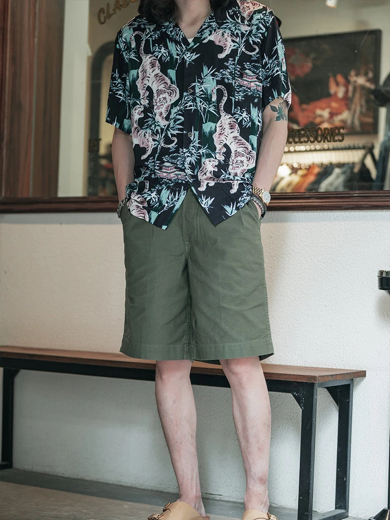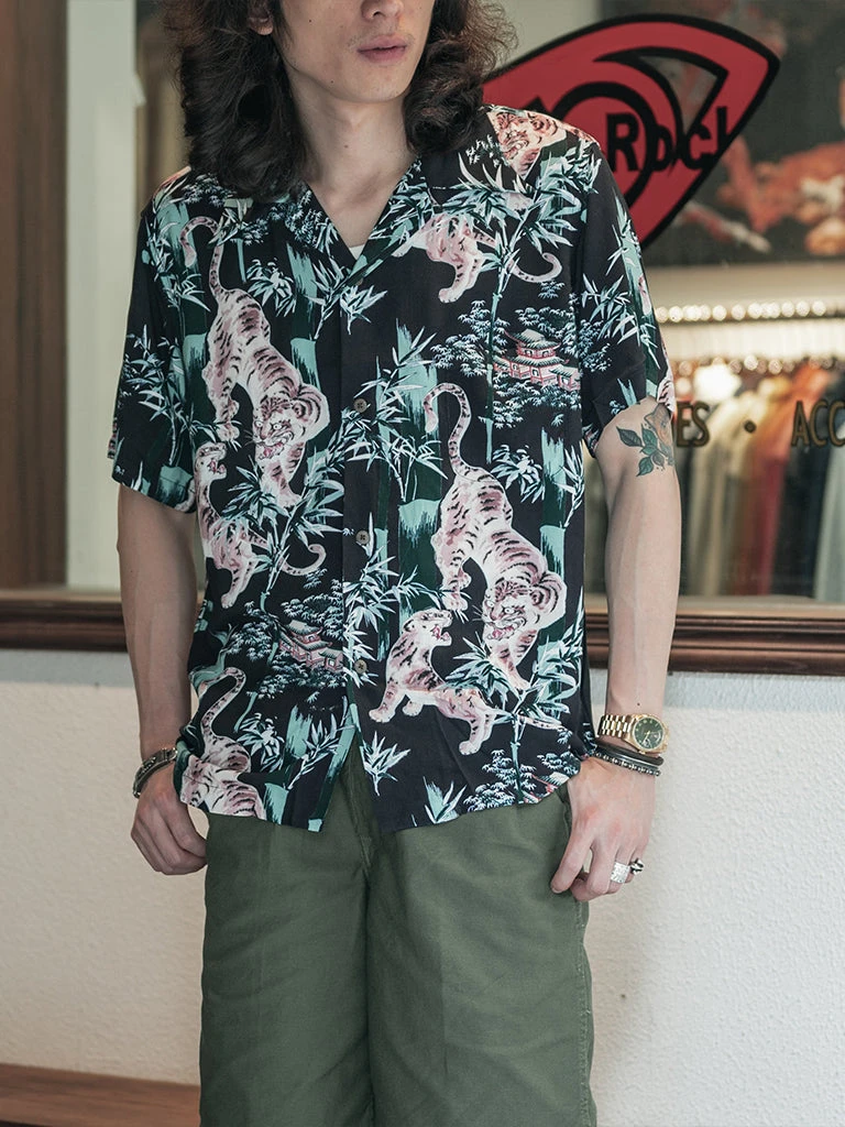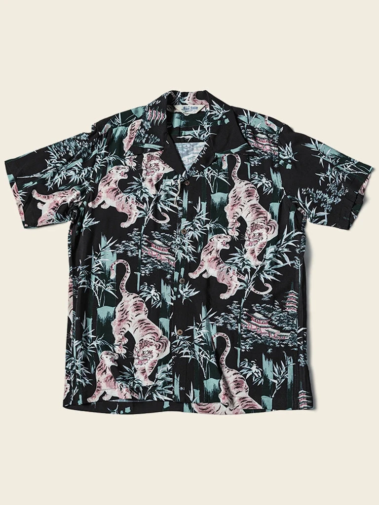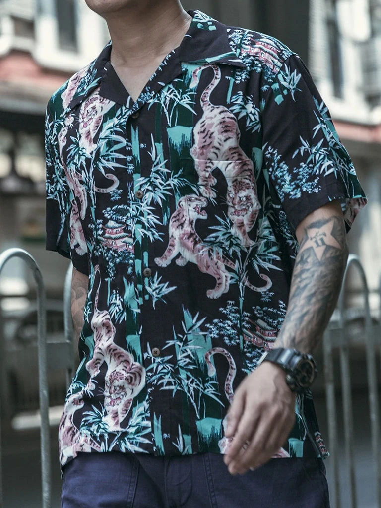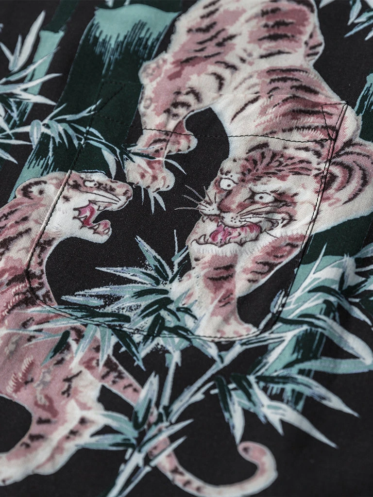 This Hawaiian shirt features Japanese Ukiyo-e Tiger & Bamboo pattern prints.