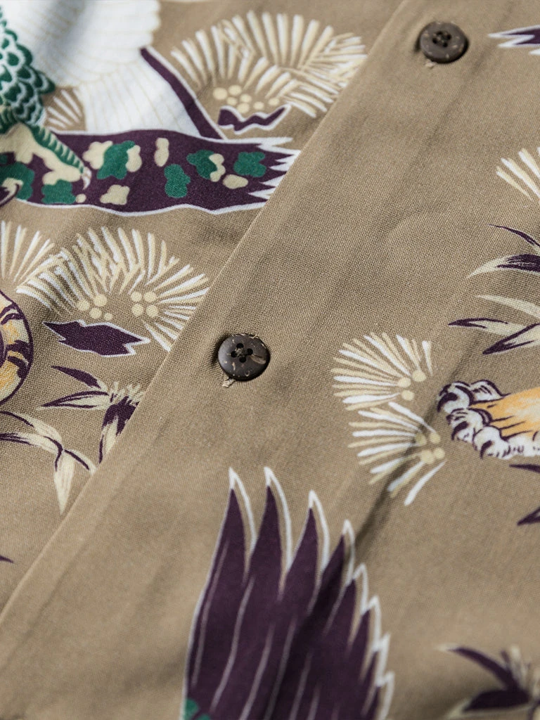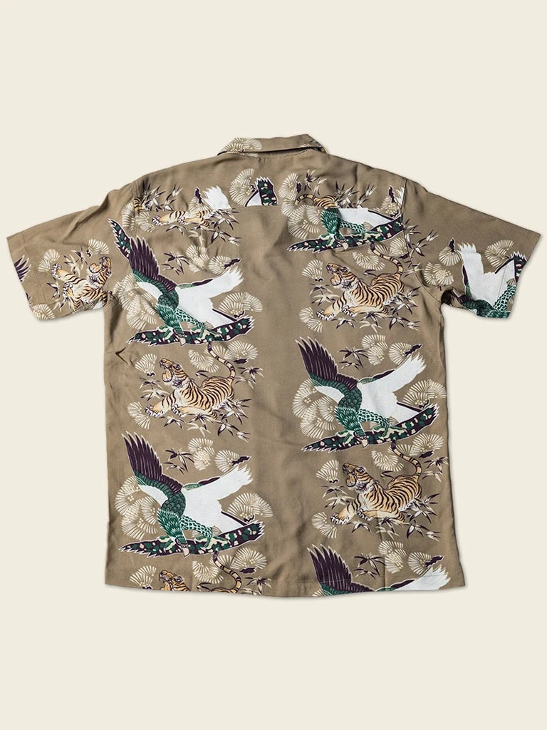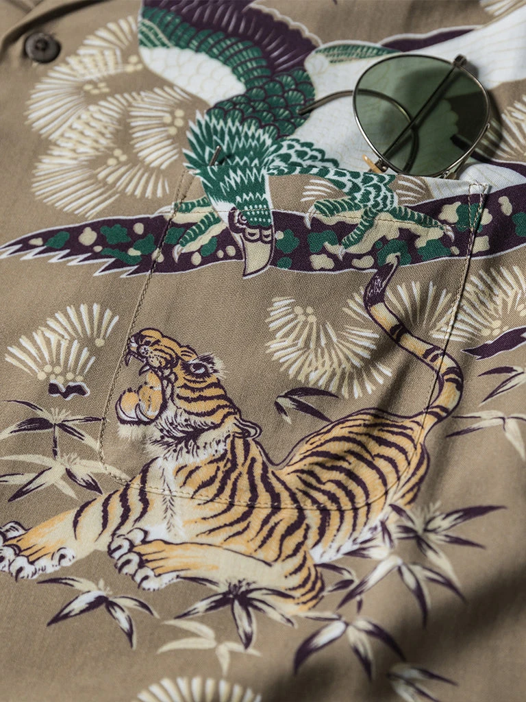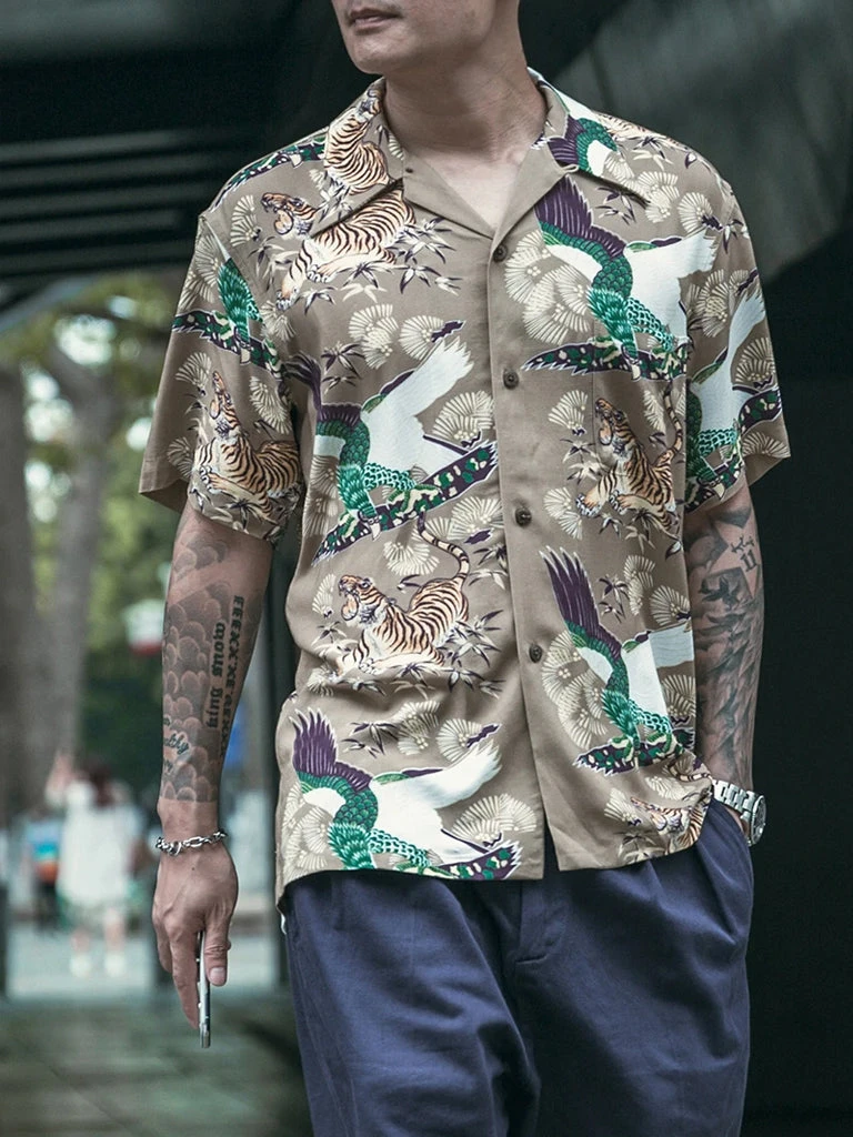 This Hawaiian shirt features Japanese ukiyo-e tiger & crane pattern prints.