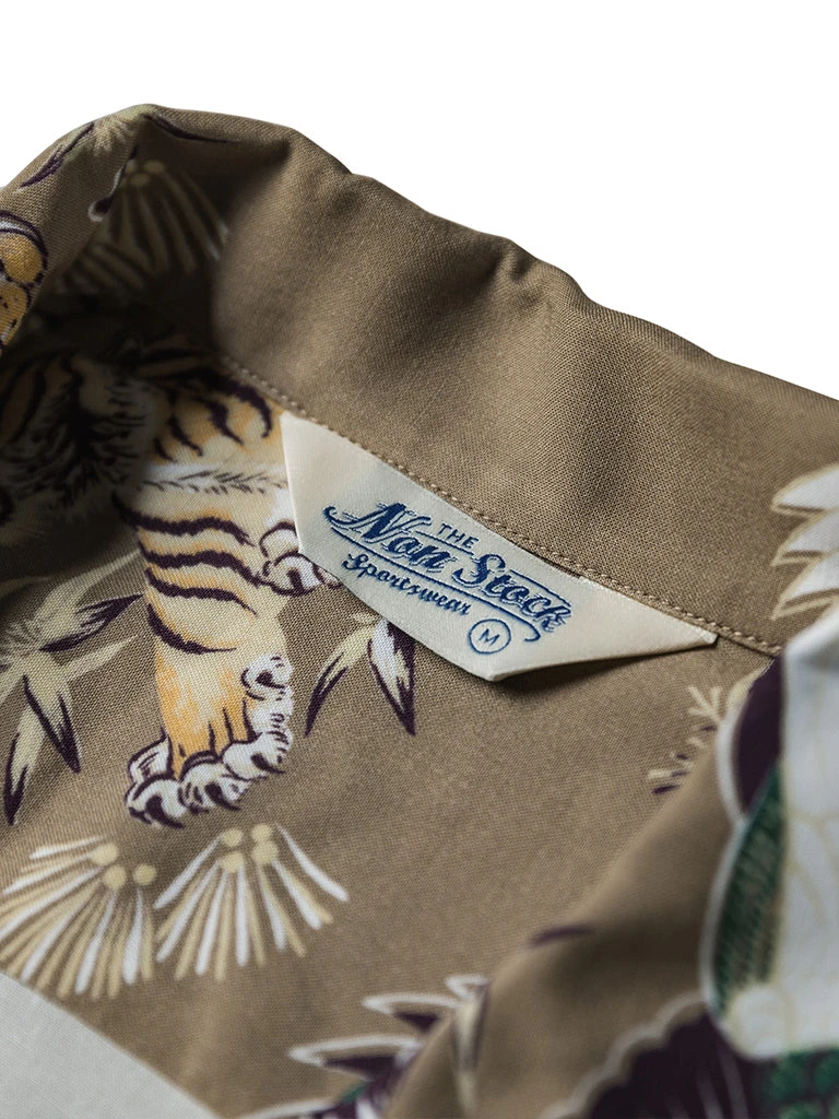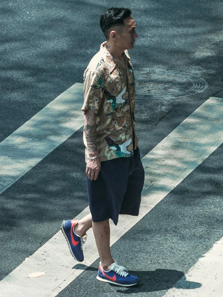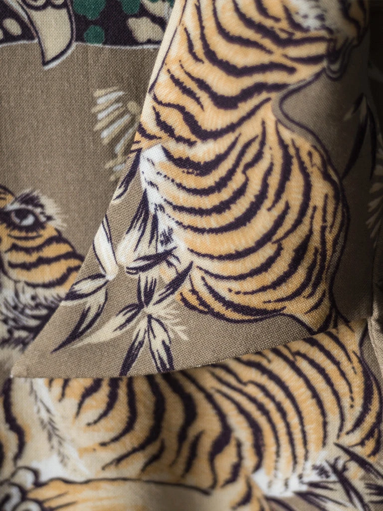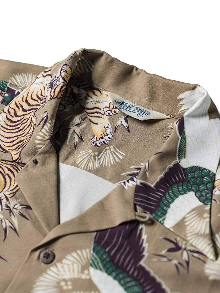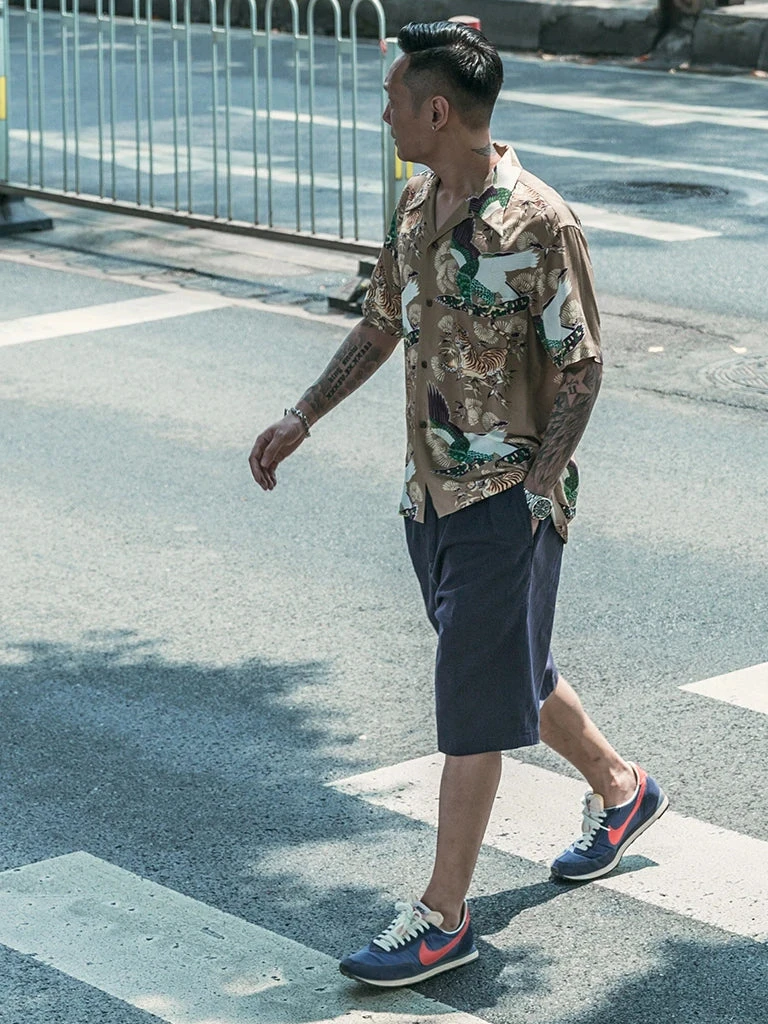 This Hawaiian shirt features Japanese ukiyo-e tiger & crane pattern prints.