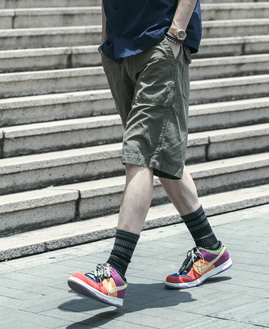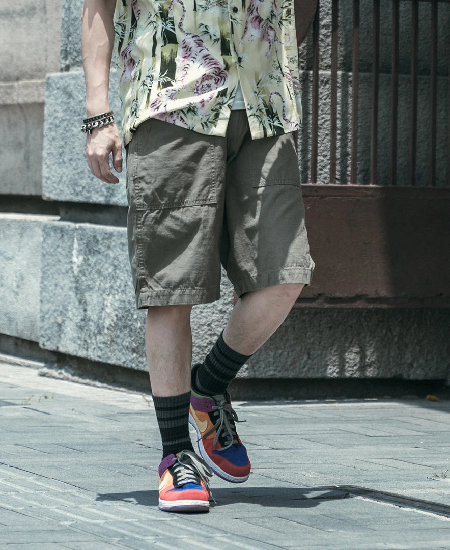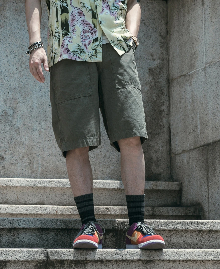 These shorts use our custom-made fabrics, and the materials are based on 1960s versions, often referred to as “COTTON SATEEN.” It’s different from the tribute silk used in the 1950s, and it was relatively light, soft, breathable, and of moderate thickness.